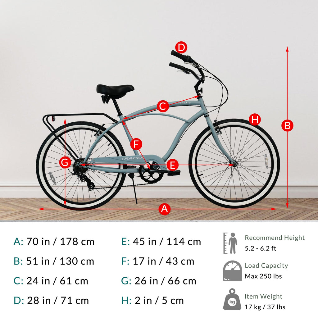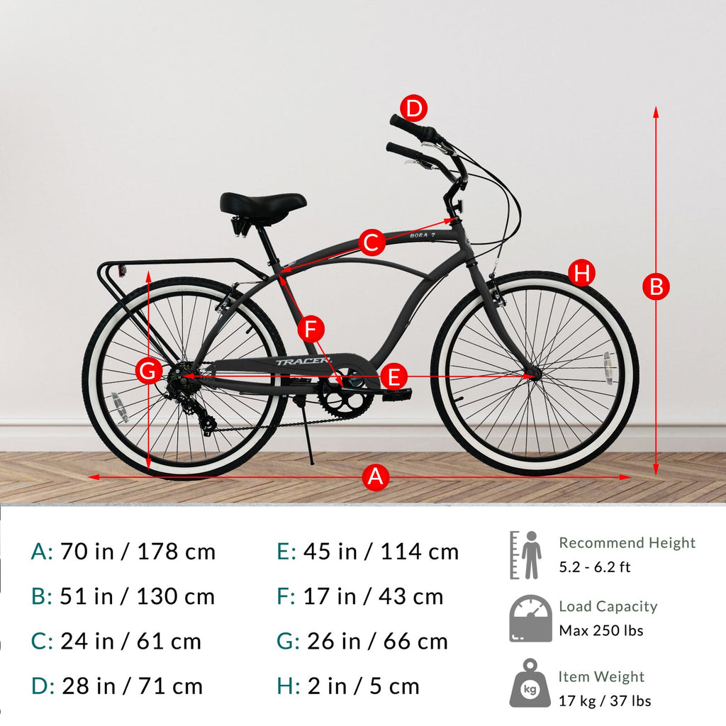 Tracer BORA-7-M 26" Beach Cruiser Bikes 7-Speed for Men, Hi-ten Steel Classical Frame, with Steel Moon type Handlebar